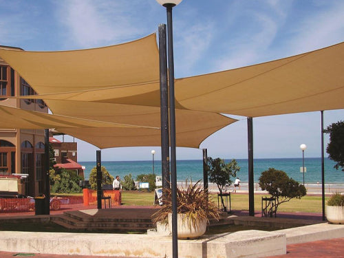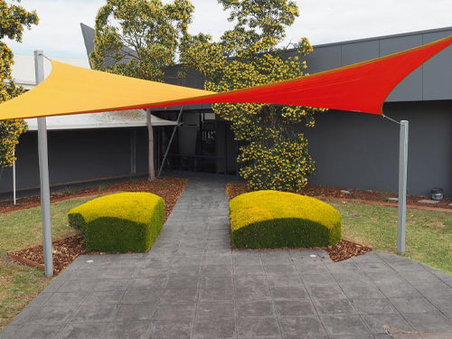 Our Slanted Framed Cantilever design features two columns with a fully framed tilted arm construction to provide a larger slant in the fabric and sharper edge.